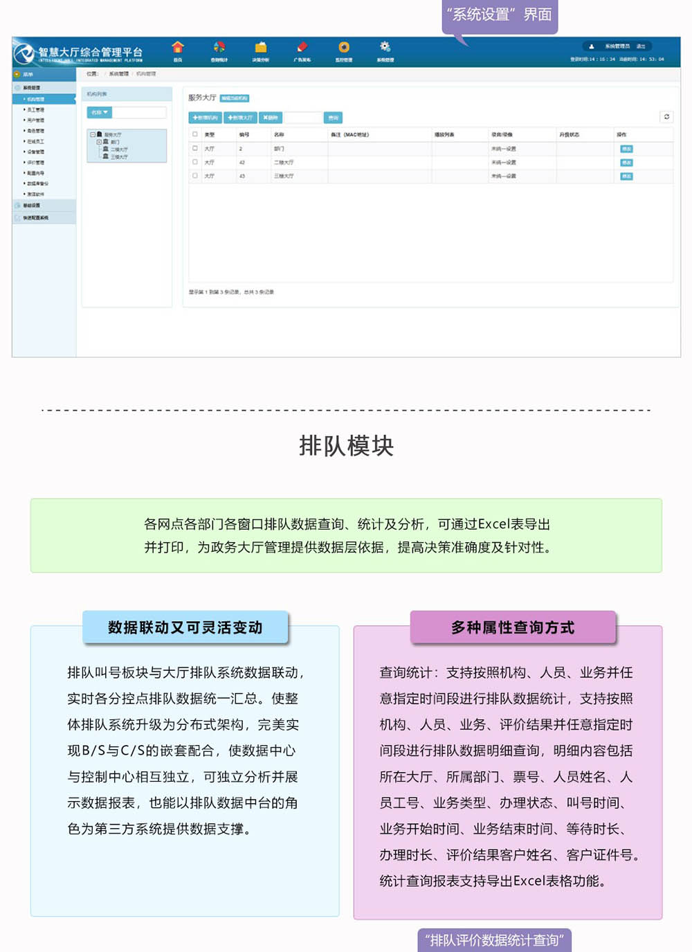 您现在的位置:首页 > 产品中心 > 智慧政务 > 智能政务软件 > 智慧大厅综合管理平台 智慧大厅综合管理平台:模块化设计 统一后台管理