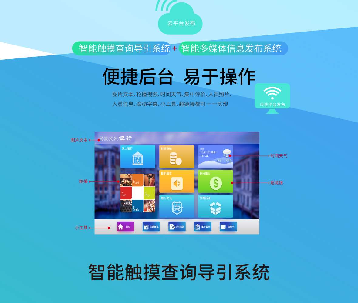 ★可通过智慧大厅综合管理平台自定义触摸查询版面、触摸查询内容等;